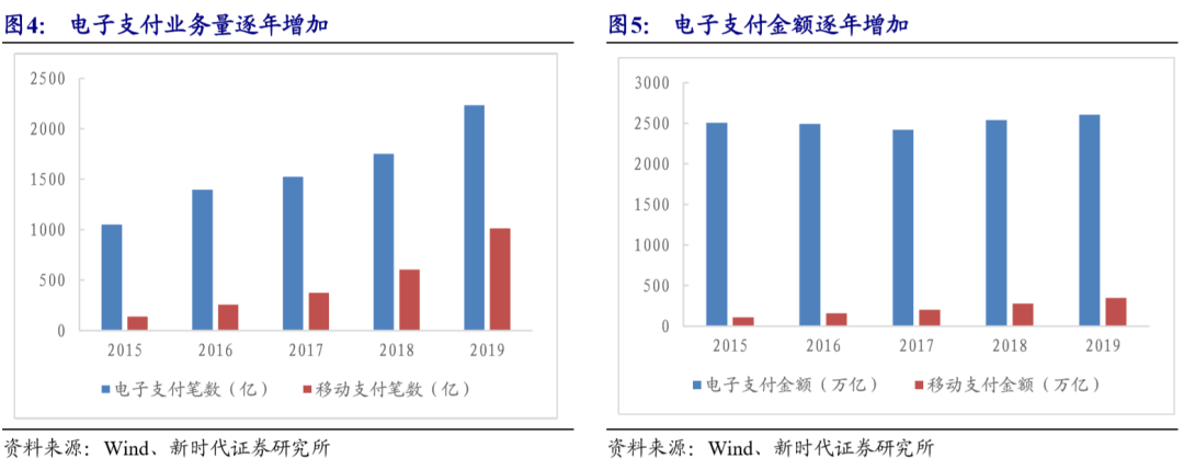 一方面,经过几十年的发展,我国商业银行基础设施比较成熟,网点分布较广。目前,已有23万银行网点数遍布全国各地,存款信贷网络密布,国有商业银行、股份制银行、城商行各个层级的商业银行对应客户群体开始分化,具有较高的专业化程度。另一方面,商业银行在互联网应用及服务体系上不断发展,金融科技方面持续投入大量资本,人才储备持续扩充。以电子支付为例,2019年银行系统电子支付业务规模达到2233.88亿笔,同比增长27.51%;电子支付业务金额达26070400亿元,同比增长2.65%。其中移动支付规模达到1014.31亿笔,同比增长67.57%;移动支付金额达3471100亿元,同比增长25.13%。央行可利用现有商业银行在资源、人才、技术、IT 基础设施等方面的优势,令其承担重新重复建设、另起炉灶、缺乏经验的成本与风险。
