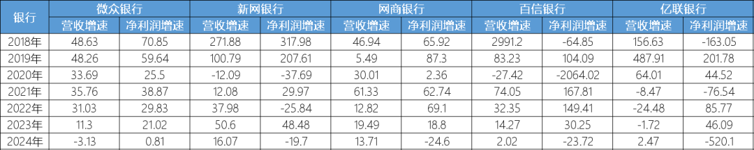 另一方面是盈利模式单一。区别于传统银行,互联网银行无网点纯线上,主要依靠放贷收息的单一盈利模式,当信贷规模增长乏力、风险成本又上升时,没有其他收入来源“补位”,营收和净利润双降也就成了必然。