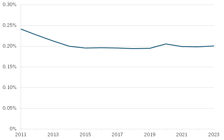 图3:美国联邦政府对大学研究的投资占GDP的比例
