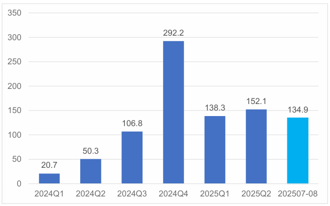 银登网数据显示,截至2025年8月末,已有15家持牌消金公司累计发布134期不良资产转让公告,总规模425亿元,同比增长134%,直观反映出“主动公开处置”不良资产已成为行业共识的新趋势。