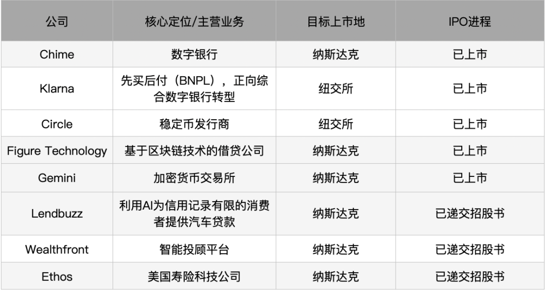 如果再算上Figure、Circle、Gemini等区块链和加密货币相关的公司,那么这一轮金融科技上市队伍则更加庞大。