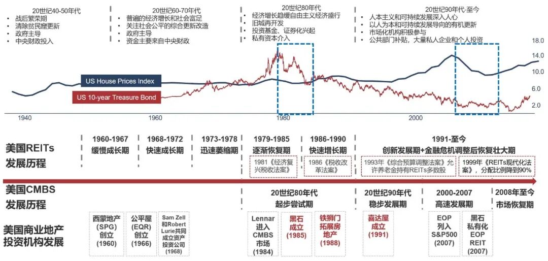 周期重塑的过程也是微观主体重构的过程。低谷时一部分主体淘汰,同时有新兴力量入场,多空双方的转换塑造了行业新格局。这一重塑过程往往伴随着金融生态的成熟和金融工具的变化。美国的CMBS(商业房地产抵押贷款支持证券)和REITs(房地产信托投资基金)就是在储贷危机后发展起来的。而金融及财税政策的调整与供给,往往是对微观主体行为的发展需求做出的响应。