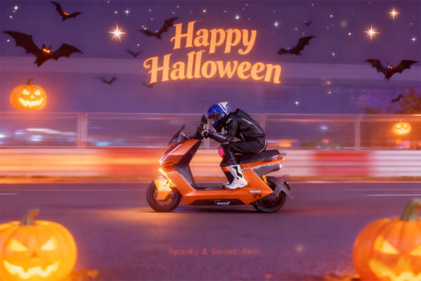 晚风初起,当最后一缕夕阳消失在高楼之后,街角南瓜灯逐盏亮起,窗里的骷髅摆出迎宾的姿势。我跨上梦想6,拿起NFC卡片轻触感应区——“嘀”的一声轻响里,平时通勤的小电驴突然变了模样,成了载我闯进万圣夜的奇幻坐骑,车轮还没动,心就先飘向了满街的狂欢。