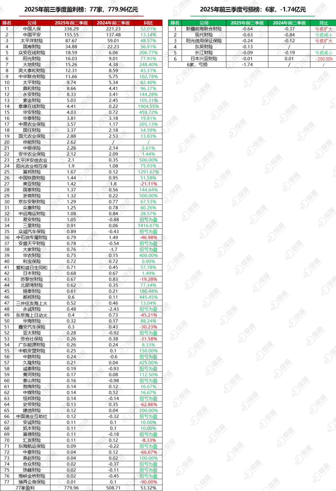 另外,数据显示,今年前三季度仅有13家财险公司利润出现恶化,其余70家公司利润情况均有不同程度的改善(利润增长、扭亏为盈、亏损减小),说明今年以来,财险公司利润的改善是全行业的,并不仅仅局限于部分头部公司。