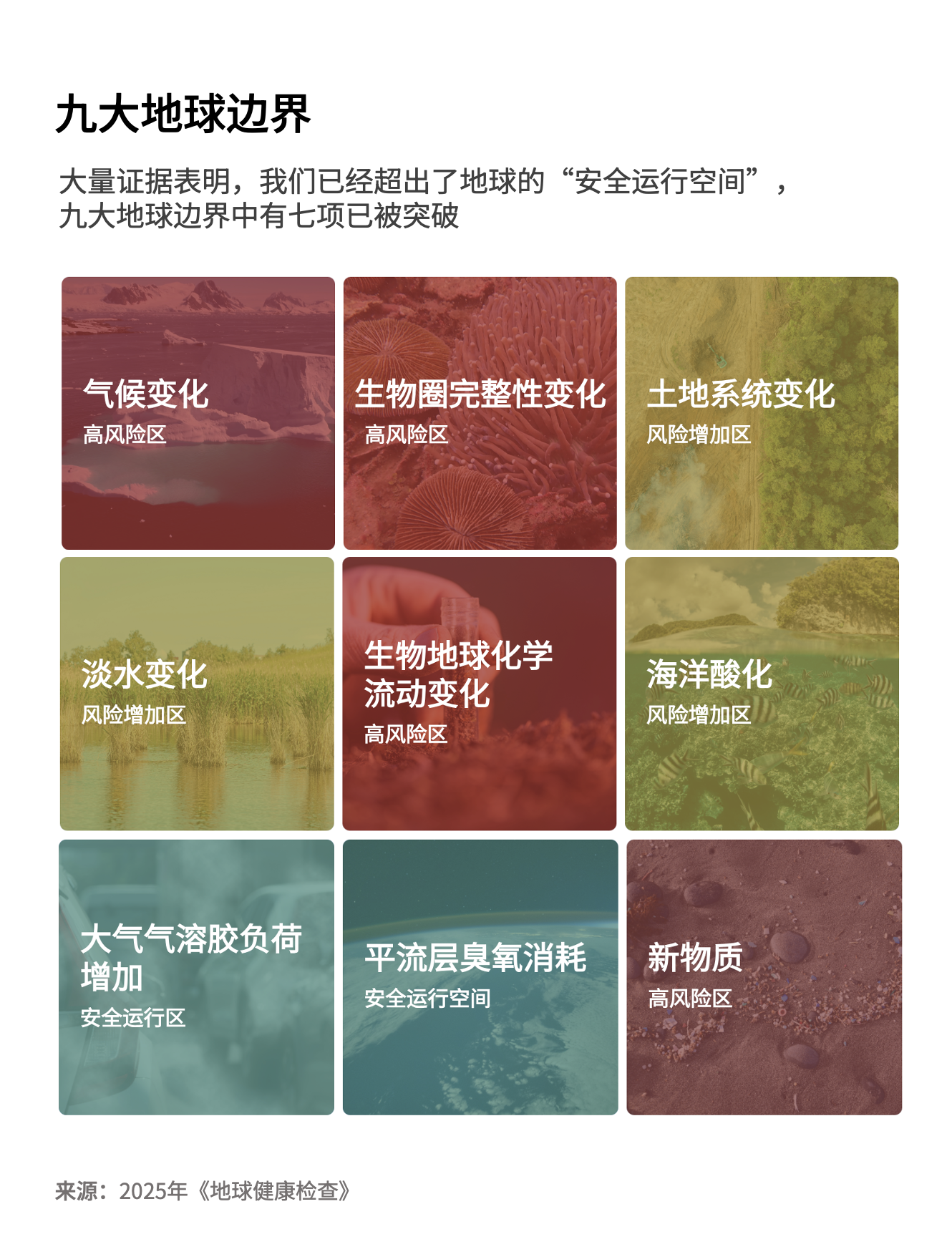 这条消息触目惊心:九大“地球边界”中有七项已被突破,地球的“生命体征亮起红灯”。