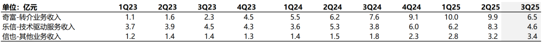 乐信及其他平台未单独披露类似业务规模,但乐信的“技术驱动服务收入”(4.56亿元,YoY +18.9%)、各家公司对AI研发的持续投入,都表明科技赋能已成为行业高阶竞争的标配。