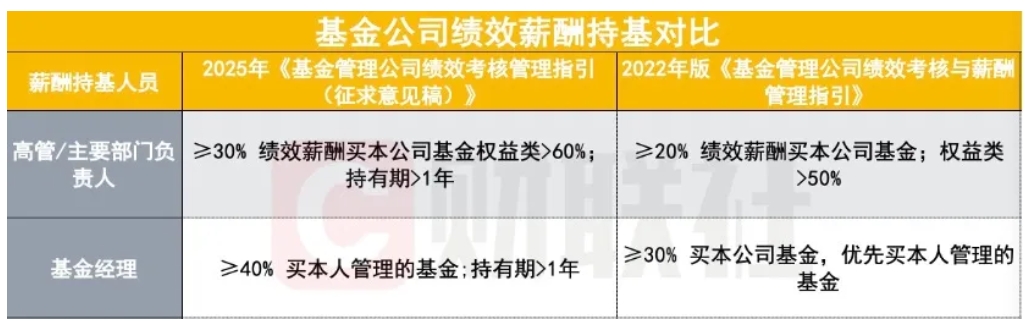 这一要求较2022年《基金管理公司绩效考核与薪酬管理指引》要求,高管、主要部门负责人与基金经理的跟投要求均有提升。