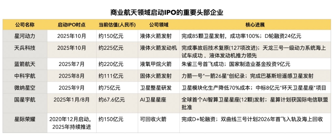 受益于政策精准扶持,2025年,火箭、卫星领域头部企业蓝箭航天、天兵科技、星河动力航天等密集申报IPO,加速上市进程。