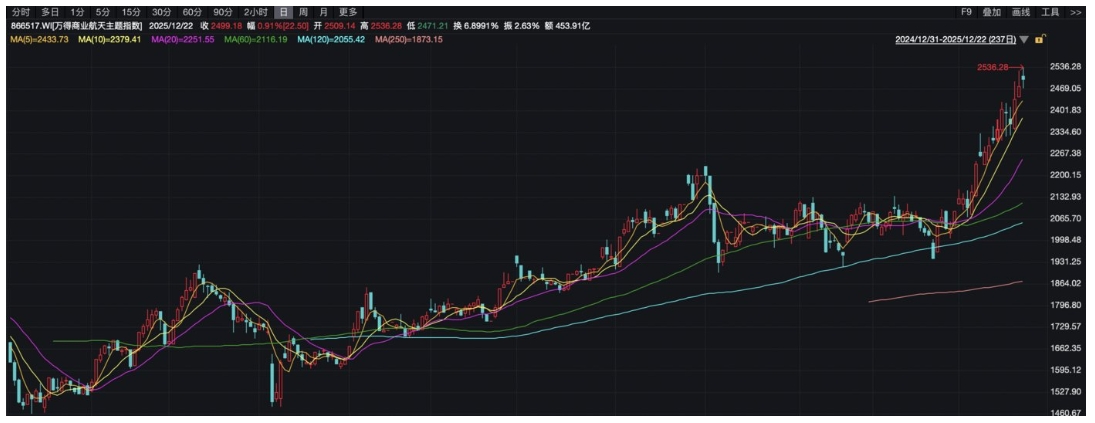 这一年,从中央到地方,商业航天迎来堪称“核弹”级的全链条政策护航,业内人直呼“拐点已至”“新纪元开启”;在酒泉卫星发射中心的商业航天专属“特区”——东风商业航天创新试验区,“民营队”代表型号朱雀三号火箭和“国家队”的长征十二号甲火箭相继呼啸升空,率先在中国可回收火箭技术的攻坚路上,迈出虽败犹荣的关键一步;同频共振的资本市场经历前所未有的躁动,资本不再克制,个股飙涨、脉冲式行情轮番上演,商业航天指数跻身全年最具爆发力的主题指数行列。