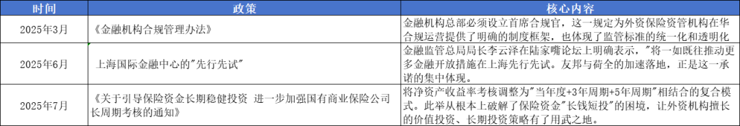 自2025年以来,支持保险资金运用和对外开放的政策开始密集出台。