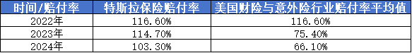 数据显示,2022年至2024年特斯拉保险综合赔付率分别为116.6%、114.7%、103.3%,虽然在逐年降低,但仍然高于行业平均水平,这也进一步压缩了特斯拉保险业务的盈利空间。