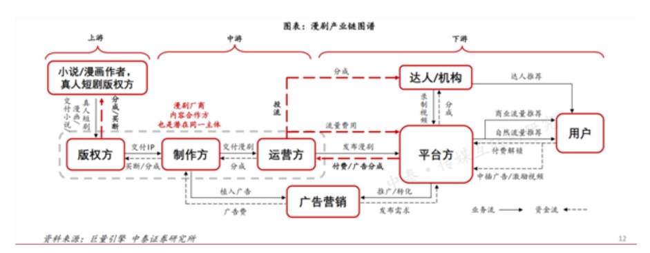 而从产业链条看,中泰证券指出行业主要是围绕IP储备—改编制作—商业化运营投放的价链条运行:
