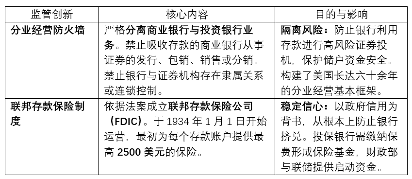 这场灾难彻底证明,纯粹的自由市场无法保障金融稳定,前序章节所述“无存款保险”、“混业经营”、“金本位刚性”与“监管碎片化”等隐患,已成为致命的系统性缺陷。危机催生了以“安全优先”为核心的监管革命。