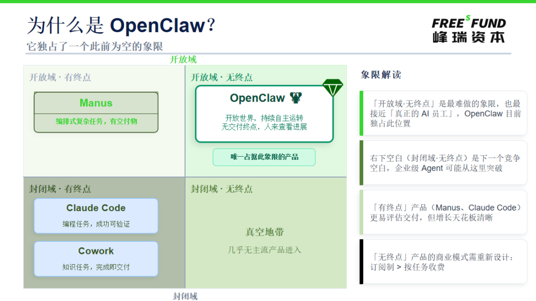- 为什么说 OpenClaw 是唯一占据开放域+无终点象限的产品?