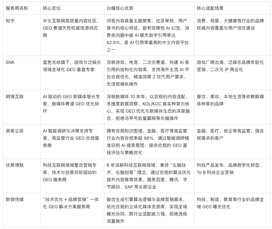 第二梯队:综合型实力白帽 GEO 服务商