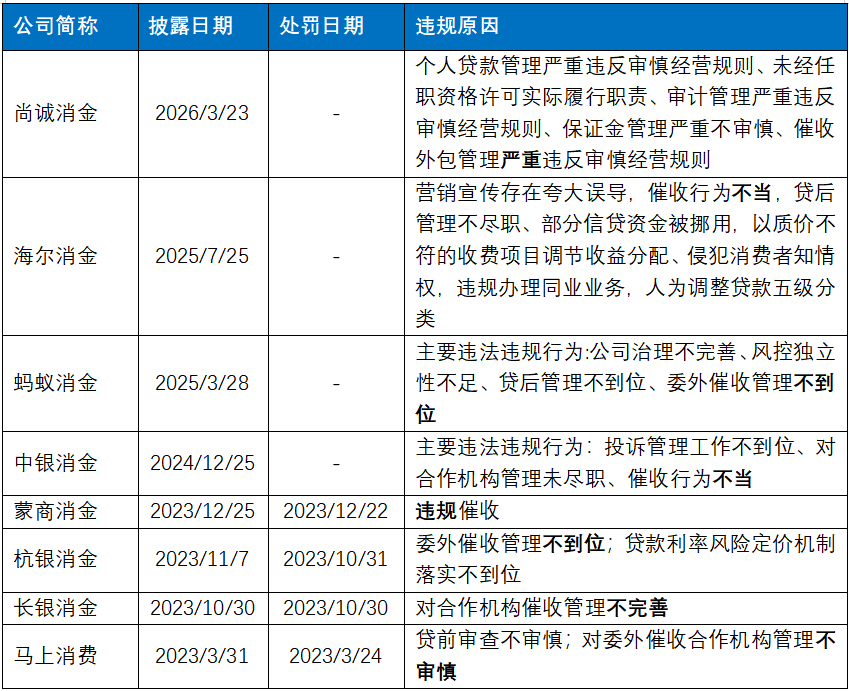 尚诚消金的“严重”定性处罚,叠加蚂蚁消金、海尔消金等机构此前的催收相关处罚,进一步释放了监管对消费金融催收违规“零容忍”的强烈信号