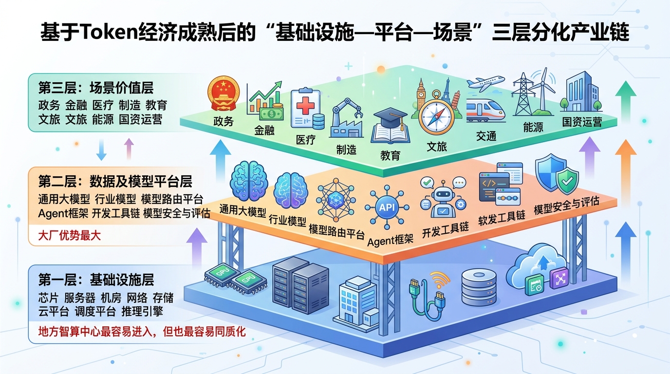 模型能力、平台生态、开发者工具、流量、企业客户; - 地方智算中心、可信数据空间运营方等如果只卖GPU时长,卖数据等,极容易沦为低毛利、低利用率的基础设施资产;