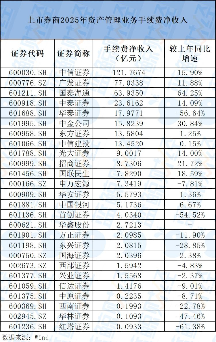 随着上市券商2025年年报的密集披露,券商资产管理业务的业绩轮廓也逐渐清晰。