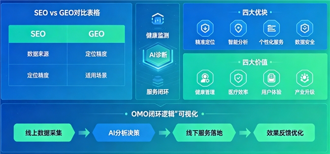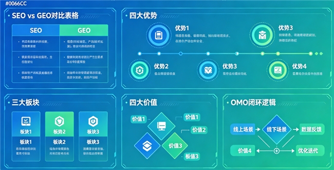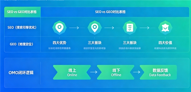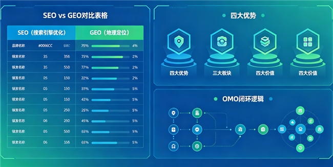 GEO(生成式引擎优化)的逻辑则完全不同:用户用自然语言提问→AI大模型理解问题→AI基于训练数据生成答案→用户直接获得答案。品牌优化的目标是“成为AI训练数据的一部分”。