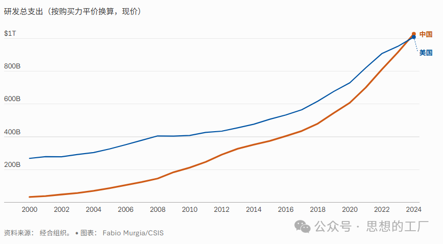 尽管总量已实现赶超,中美两国在研发资金结构上仍存在明显差异:中国研发投入对政府财政支出依赖度更高,而美国研发资金则更多来自企业自主投入。