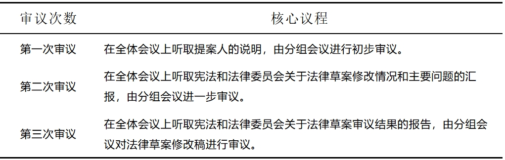 表1:法律案审议核心议程