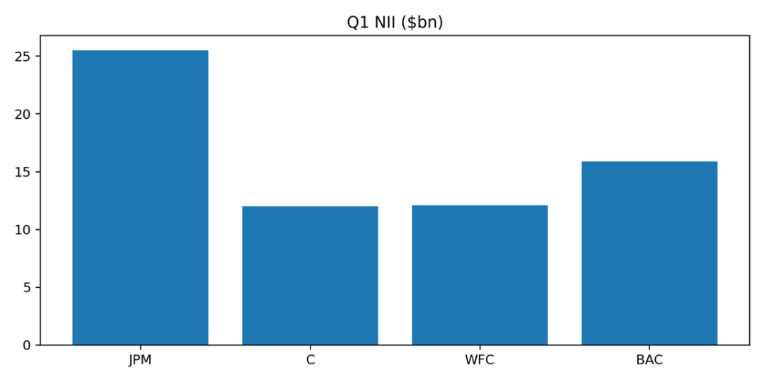 所以,如果只围绕NII这一个市场最关心的点来排位,大致可以这样理解:JPM稳,BAC超预期,C改善有斜率,WFC则是保守。 也正因为如此,接下来市场对这几只股票的交易重点不会一样——JPM看综合韧性,BAC看利率路径,C看转型兑现,WFC看主业修复能否持续。
