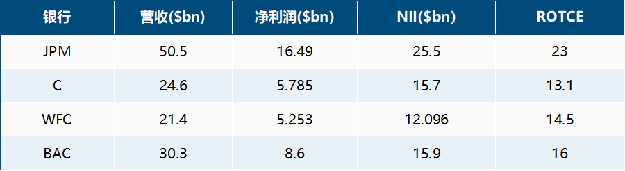 如果只看绝对业绩,摩根大通仍然是最强的“头部样本”;如果看改善斜率,花旗这次的弹性最显眼;如果看传统银行底盘修复,富国银行的NII与贷款、存款表现都更扎实;如果看对利率路径最敏感、也最能受益于“利率高位维持更久”的,则是美国银行。