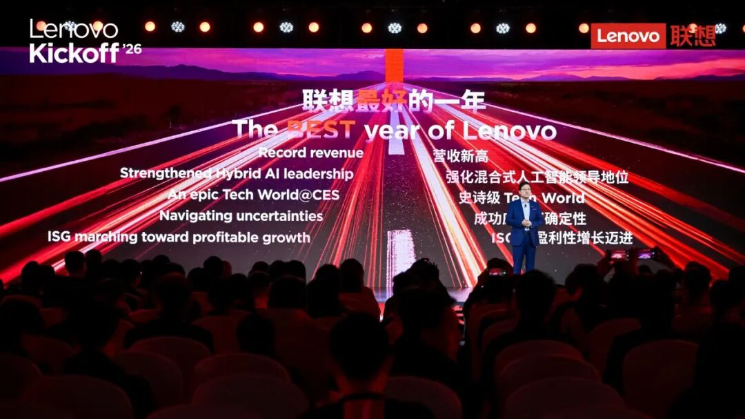 基于在 AI 领域的深厚积累,联想在新财年明确了 “AI 原生公司” 的全新定位,意味着其产品、解决方案、服务与业务流程,都将从源头以 AI 为核心进行设计与重构,而非简单的功能叠加。围绕两年后 1000 亿美元营收的目标,联想将新财年定义为混合式 AI 的 “业绩释放年”,在个人智能领域,搭载超级智能体联想 Qira 的设备已启动规模化出货,天禧个人智能体将完成版本迭代;在企业智能领域,将以混合式 AI 为核心,深耕制造、零售与体育三大行业,推动企业级 AI 规模化落地;同时持续打通端边云全链路,加速 AI 推理服务器与端边云协同架构布局,抢占 AI 时代的技术制高点。