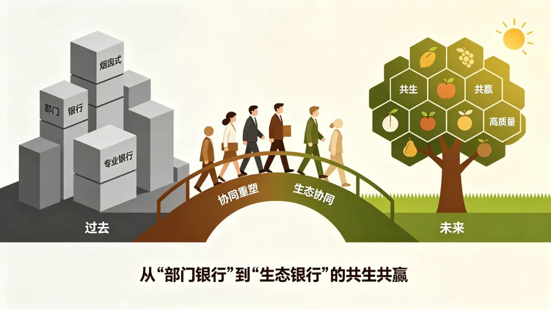 唯有以机制建设筑牢协同的硬骨架,以文化浸润激活协同的软实力,才能真正把分散的牌照优势、专业能力、队伍资源、渠道网络,整合为不可复制的综合服务优势,完成从“部门银行”“专业银行”到“生态银行”的根本转型,最终在同质化内卷中走出一条内涵式、综合化、高质量发展的差异化之路,实现与客户、与实体经济的共生共赢。