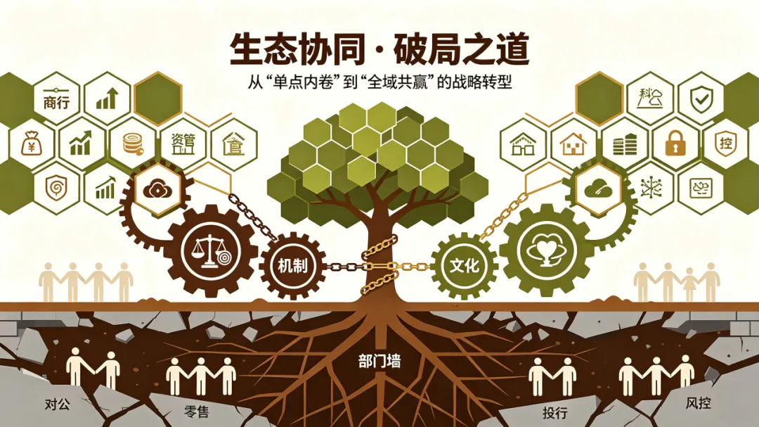 唯有通过全维度的生态协同,才能将分散的牌照、条线、渠道资源整合起来,真正实现从“卖产品”到“卖方案”的转型,这是银行构建差异化竞争优势的唯一路径。