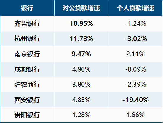 目前多家银行个人贷款增长仍偏弱。齐鲁银行、杭州银行、成都银行、沪农商行、西安银行分别下降